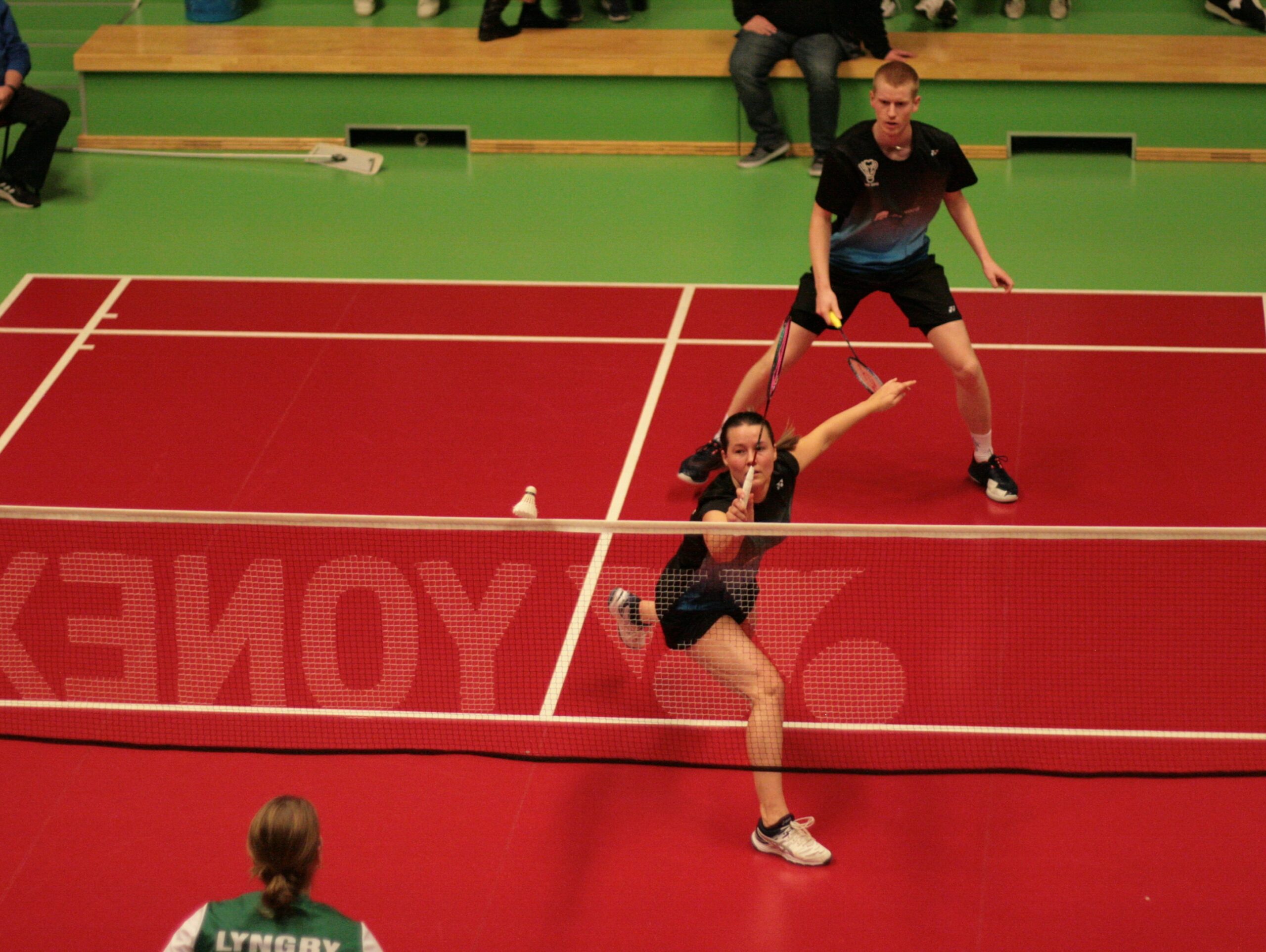 Træner Dennis var naturligvis en glad mand efter kampen. Vi fik et optimalt udbytte fra kampen, og vi fik set at vores bedste spillere har et stabilt højt topniveau. Vi fik også set at vores unge talent Smilla Kristensen fortsat viser fremgang i sin 2. DS – og det er dejligt at se. Vores 2. HS Patrick er hidtil ubesejret og har vundet 4 af sine 5 sejre i tætte 3 sæts kampe! Kampen mod Lyngby var ingen undtagelse. Han fik hevet sejren hjem efter lang kamp med 23 – 21 i tredje sæt. Patrick blev også kampens spiller. Hæderen blev delt med Camilla Paulsen, der flot vandt 2. MD sammen med Mads.